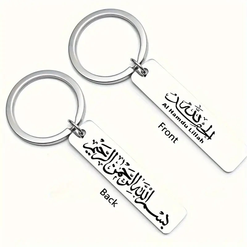 Discover the best Islamic keychain with Alhamdu Lillah and Bismillah designs, crafted from durable silver. This Silver Double-sided Long Keychain with Alhamdu Lillah and Bismillah features beautiful calligraphy, making it perfect for daily use at home or in offices. The Front Side showcases the Al Hamdu Lillah Keychain (Silver), while the Backside displays the Bismillah Keychain (Silver) with intricate Arabic calligraphy. Ideal as a special gift for any occasion, it combines style with meaningful faith-inspired art. A must-have Islamic keychain that reflects your devotion.